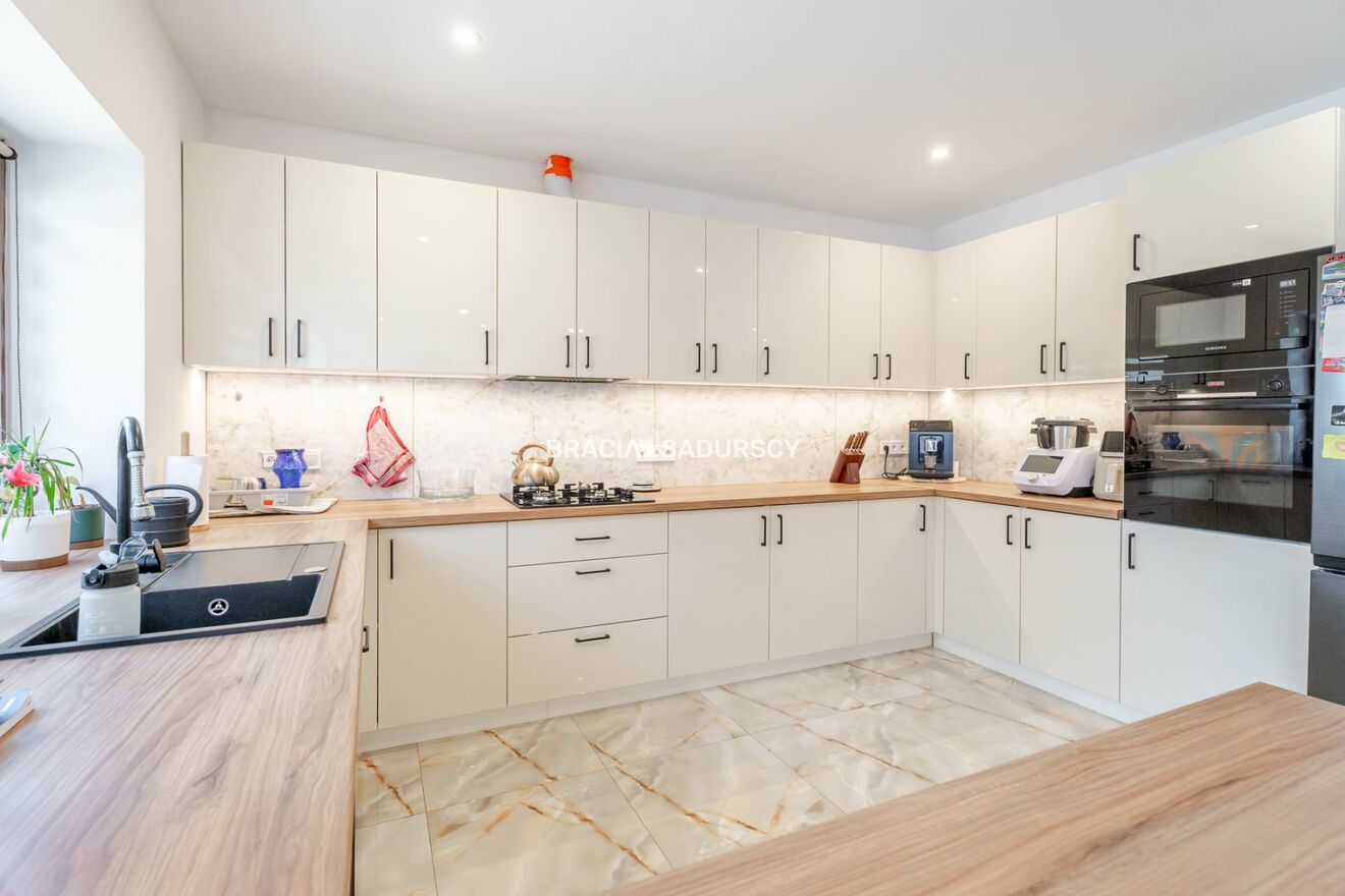 Wyposażenie kuchni: stała zabudowa, szafki wiszące, szafki stojące, meble kuchenne na wymiar, zmywarka, zlewozmywak z baterią, zamrażarka, zabudowa kuchenna, wyposażenie drobne, szafki kuchenne, płyta grzewcza, piekarnik, okap kuchenny, mikrofalówka, lodówko/zamrażarka, lodówka, kuchnia elektryczna |